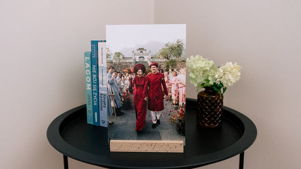 Naturalne drewno nadaje całości prostoty i nowoczesnej elegancji, a jednocześnie podkreśla charakter fotografii. Stand jest lekki, praktyczny i świetnie sprawdza się jako uzupełnienie Art Print Panel.